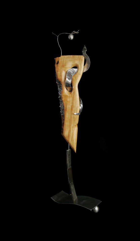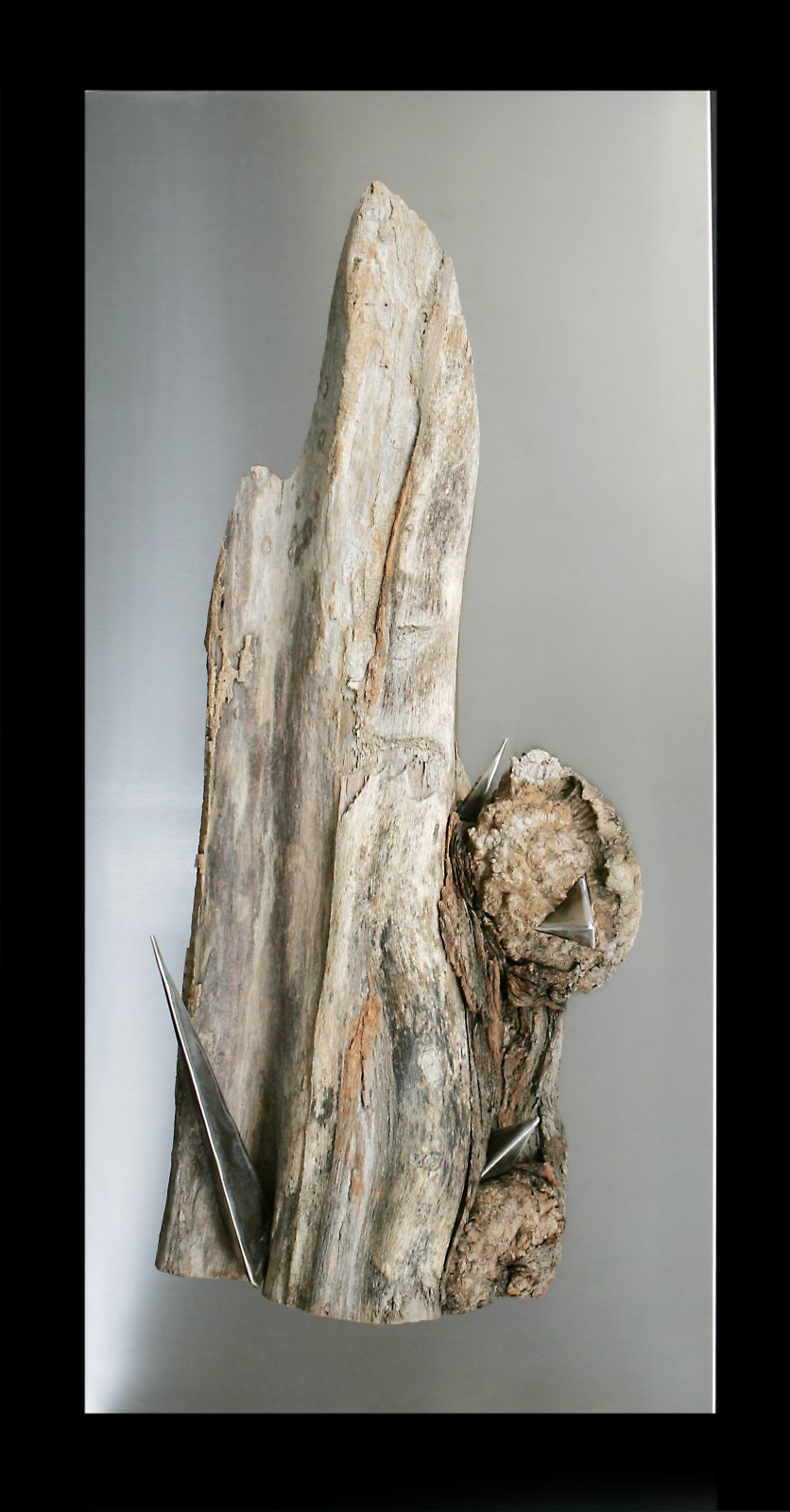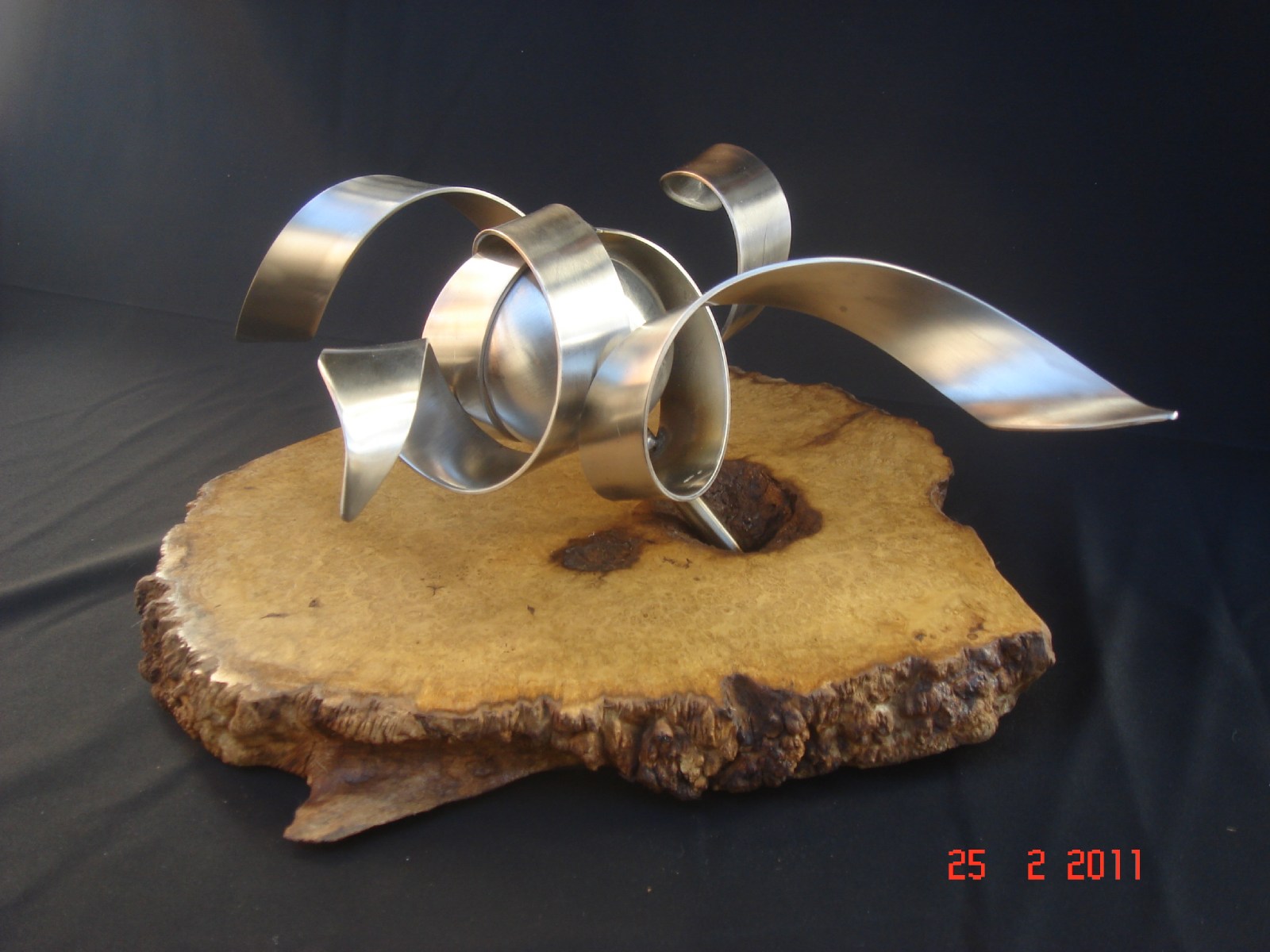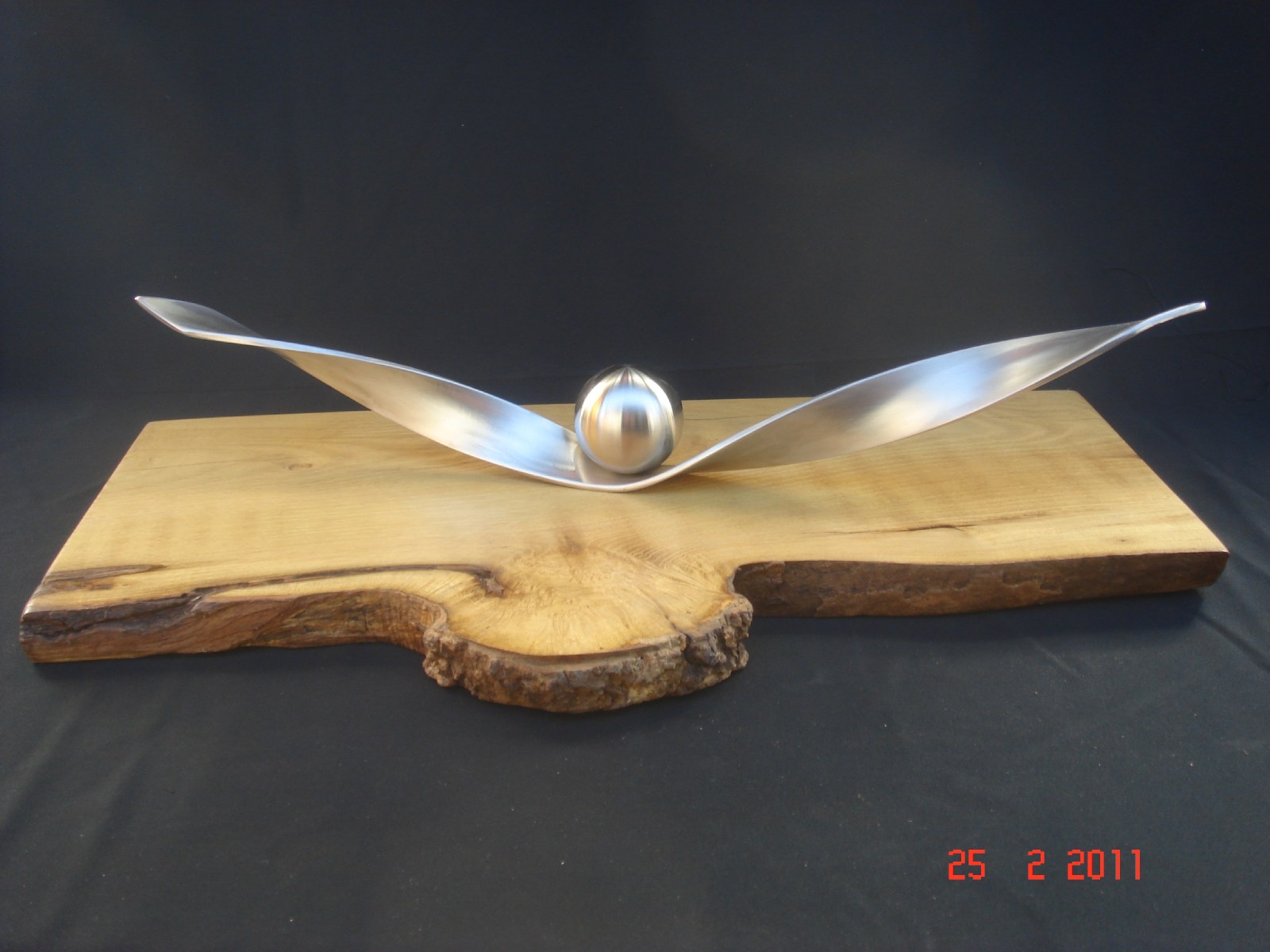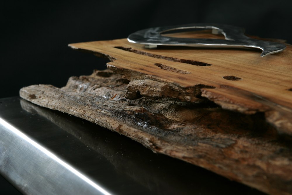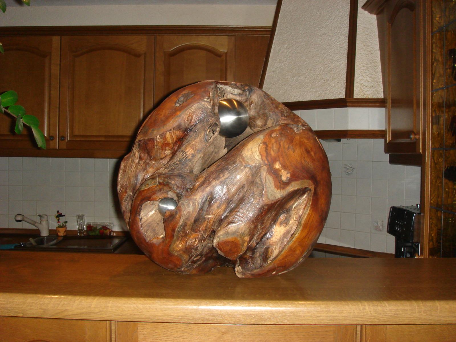 Glänzender Edelstahl und robustes Naturholz vereinen sich zu einem einzigartigen Kontrast von Mensch und Natur. Diese Dualität zweier Welten erzeugt einzigartige Kunstwerke, die in jedem Raum zum Blickfang werden.