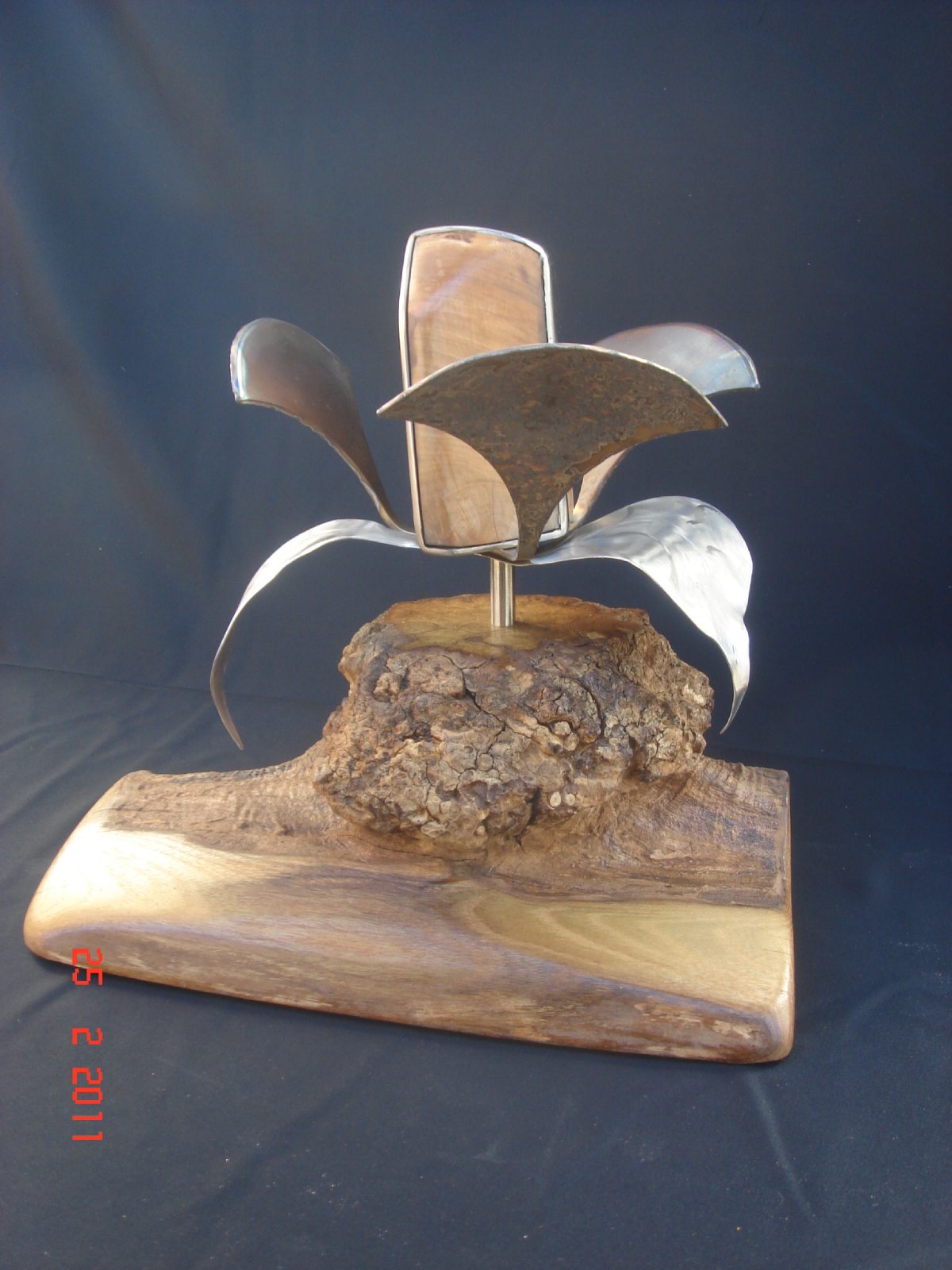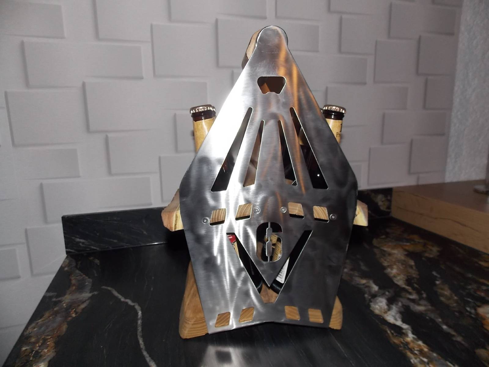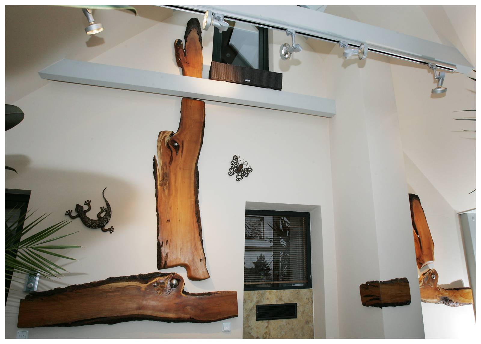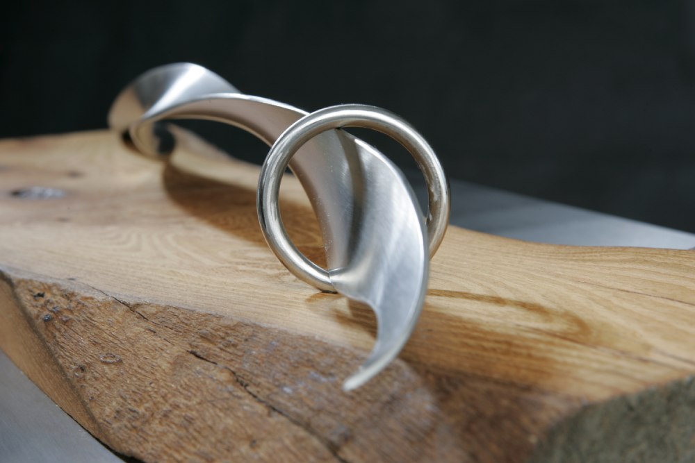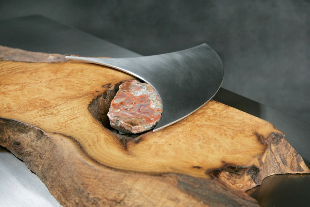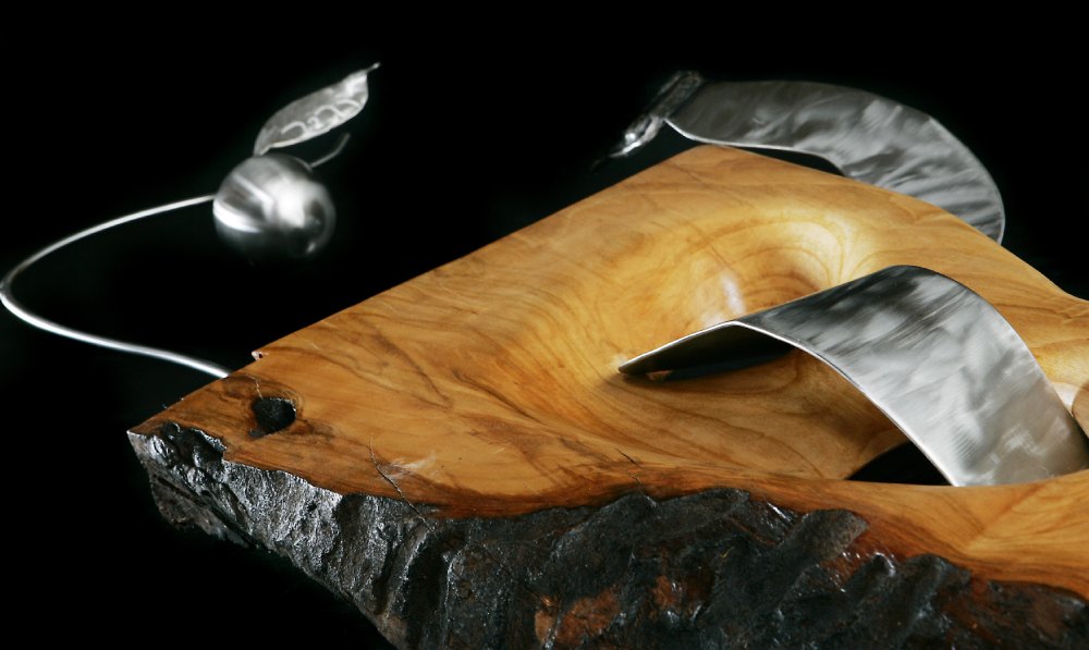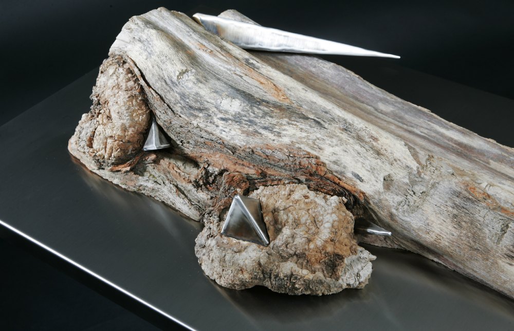 Glänzender Edelstahl und robustes Naturholz vereinen sich zu einem einzigartigen Kontrast von Mensch und Natur. Diese Dualität zweier Welten erzeugt einzigartige Kunstwerke, die in jedem Raum zum Blickfang werden.