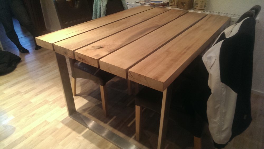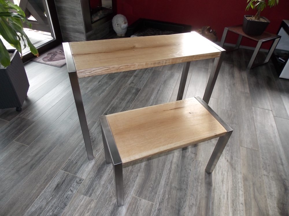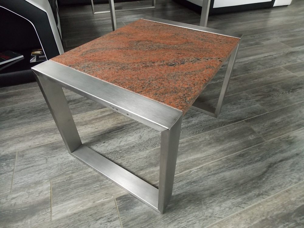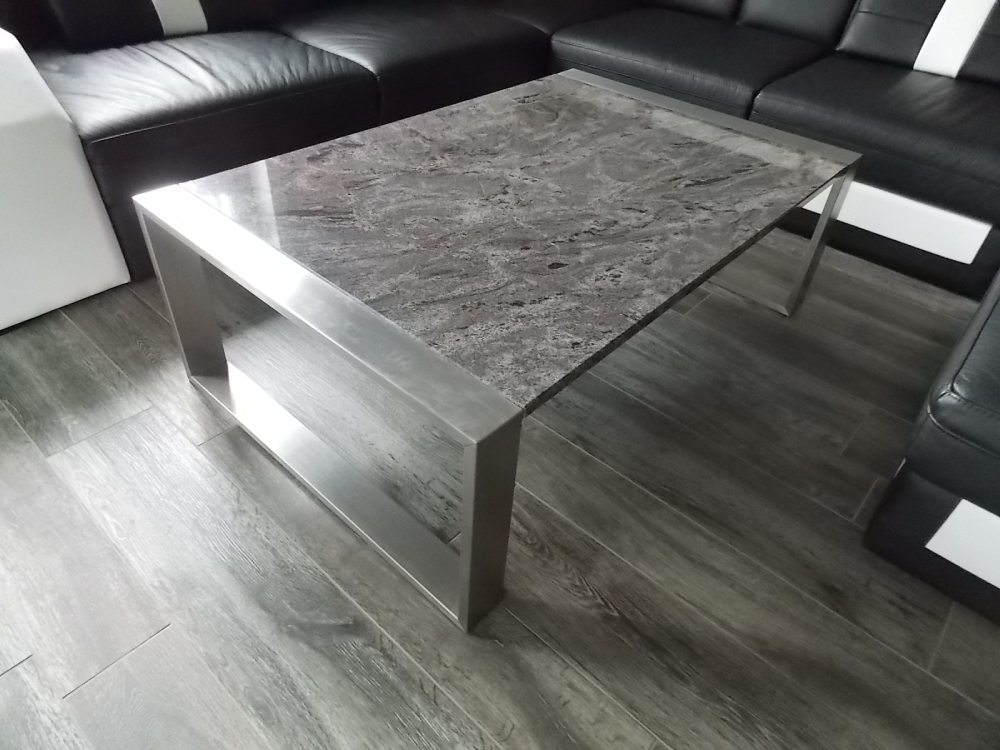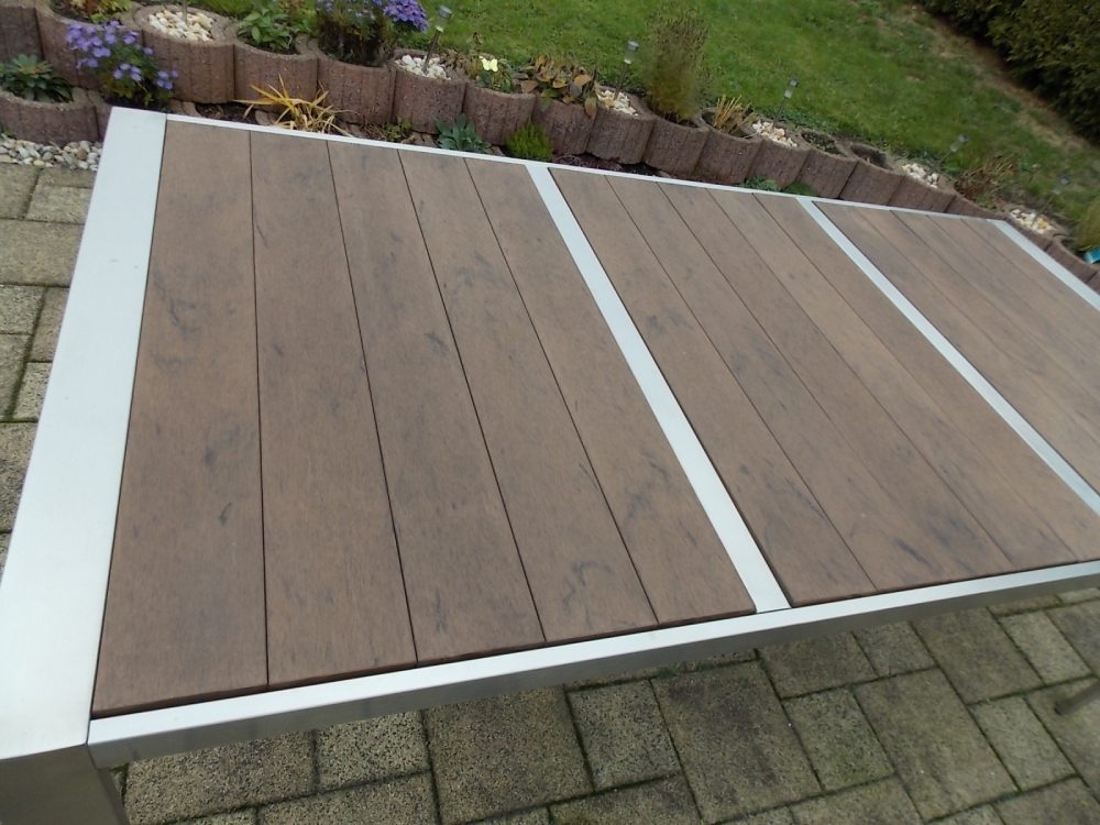 Couchtische, Esstische, Gartentische und mehr aus Edelstahl mit Tischplatten aus Holz, Altholz, Holz in Altholzoptik, PWC ( Polywood / Kunststoff) oder aus Naturstein.