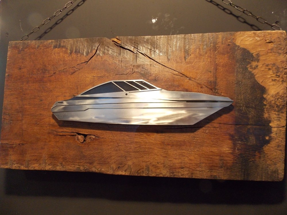 3D Bootsbilder oder andere Motive in Edelstahl als 2D-Portrait in einem Wandbild integriert.