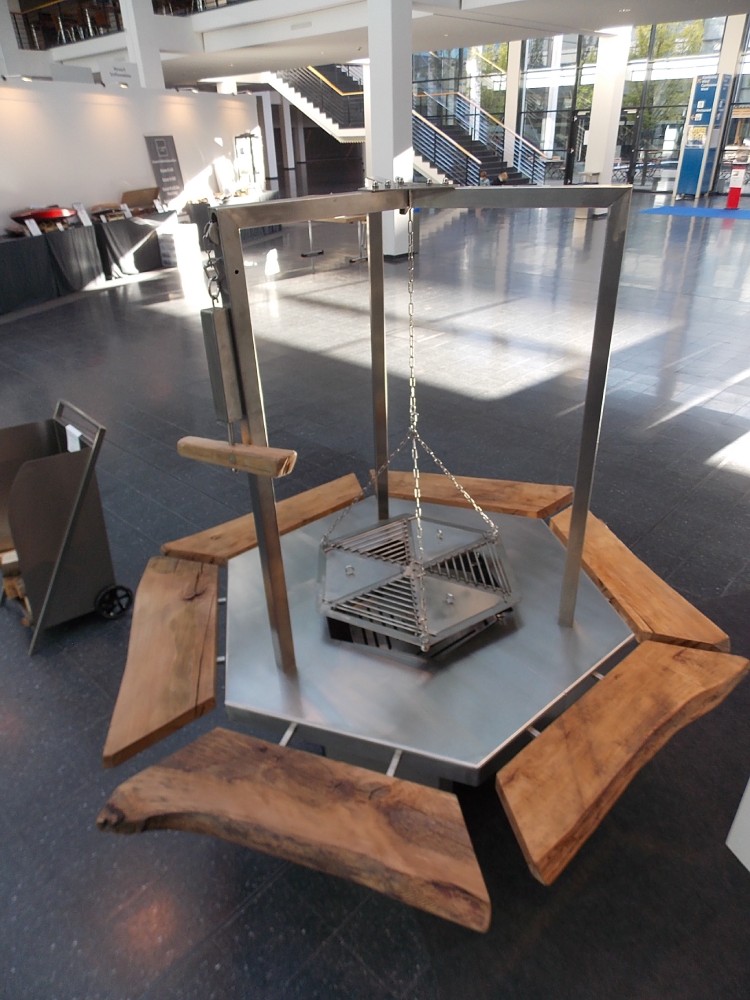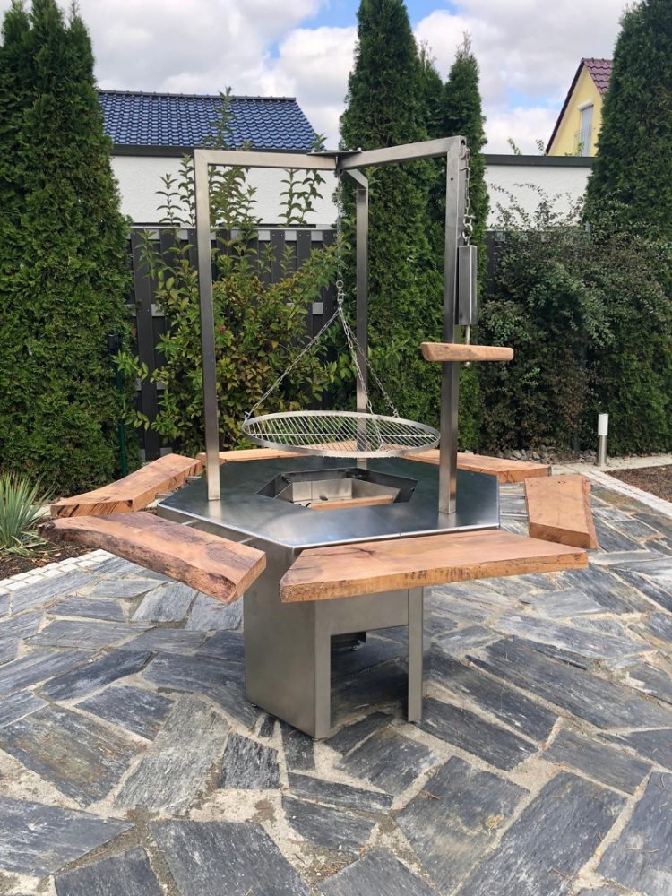 Einzigartige Feuerstellen für Kaminholz & Schwenkgrills / Grilltische für Holzkohle, sowie Bier- und Weinträger individualisiert mit Namen oder Logo.